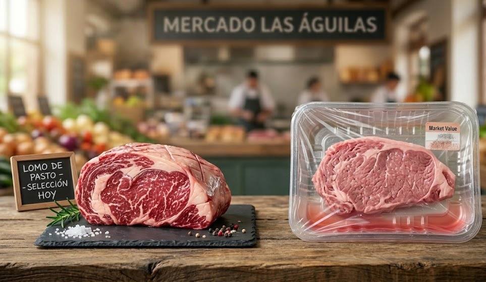 ¿Sabías que un filete envasado del súper puede tener hasta un 20% más de sal y agua que uno de carnicería? Esa sal te hace retener líquidos y te hace sentir pesado. Al comprar en nuestra tienda Online, la carne es 100% carne. No hay «trucos» para que pese más, por eso te sientes mucho mejor después de comerla. La salud intestinal empieza por eliminar los químicos, y eso solo se consigue volviendo al mercado de toda la vida.